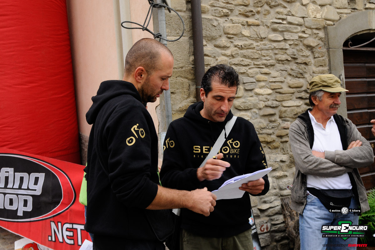 In questo paesaggio da sogno tra le colline che diventano man mano sempre più ripide dopo i dolci pendii che conducono alla pianura ha trovato spazio la Senio Bike, associazione sportiva locale che basa tutte le attività sulla bici e sui fantastici sentieri della zona. Senio Bike nasce dalla passione per la mountain bike di un gruppo di ragazzi di Palazzuolo sul Senio con l’obiettivo promuovere i paesaggi dell’appennino tosco-romagnolo; le colline dell’alto mugello consentono agli appassionati delle ruote grasse di poter sfogare tutta la loro voglia di riding circondati da paesaggi suggestivi ed ambienti incontaminati. La bellezza del territorio e gli innumerevoli itinerari da hanno spinto i ragazzi di Senio Bike a mettere a disposizione la loro conoscenza dei sentieri per creare itinerari affascinanti alla portata di ogni biker, dal rookie al più esperto. Il grande lavoro dei ragazzi di Senio Bike è stato premiato con i complimenti di tutti gli atleti al traguardo, una bella soddisfazione per un’organizzazione esordiente nel Superenduro. Sicurezza ed allestimenti delle prove speciali impeccabili, servizi perfetti ed un lavoro di squadra da grande evento, questo gruppo di amici che ama la mountain bike non poteva presentarsi meglio al circuito Superenduro.